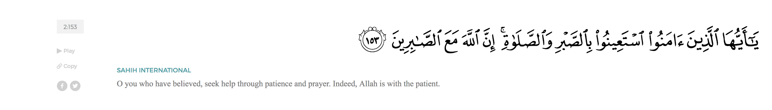 Oh you who have believed, seek help with patience and prayer. Indeed Allah is with the ones who are patient. (2:153)